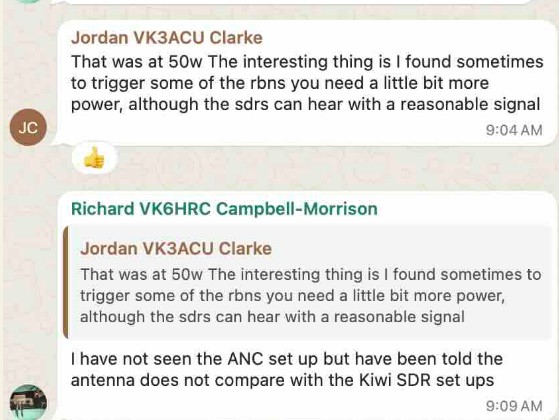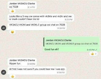 So ignoring Paul’s AR KN at the end of his transmission, I inserted a BK between the next two overs, and after acknowledgement, started a three-way QSO. What fun! Jordan’s comment on WhatsApp: