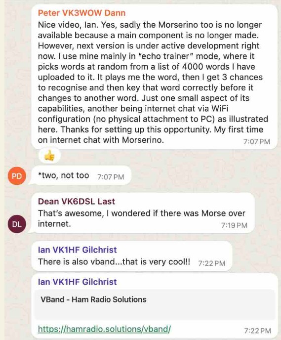 [Thanks gents. I haven’t tried CW over the Internet using V-Band yet, but I know many of the team are on it…. including our team member Ross MONNK as you can see above.