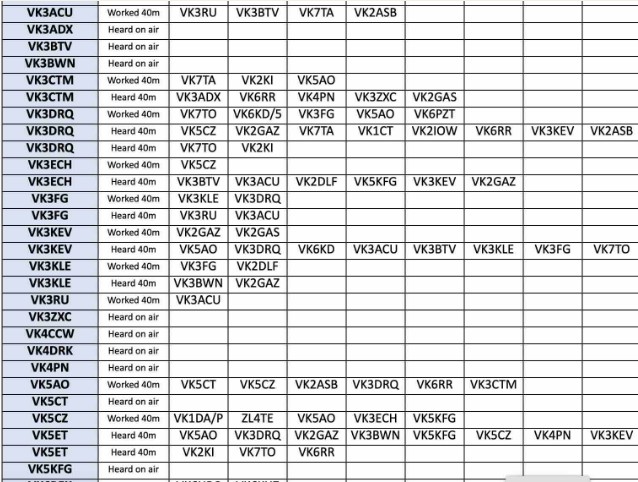 Once again, a huge thank-you to our part-time Aussie Nigel G4RWI for building bott the webform that we all use to submit our reports, and the outstanding software too that I use to convert the collected reports into the Excel spreadsheet above and individual reports that you’ll see below.