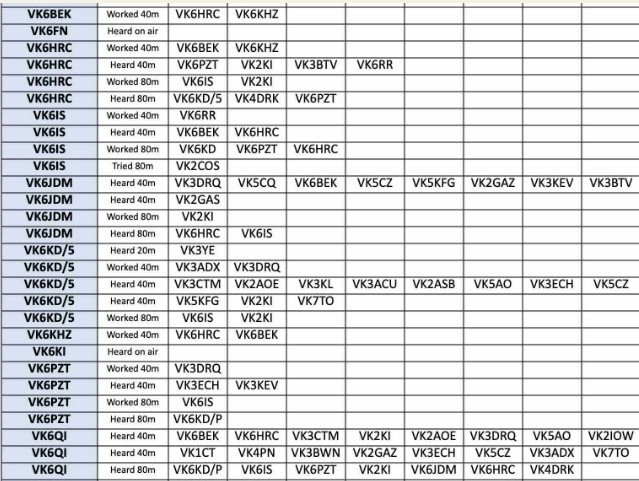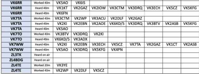 Thank you so much to our team of 34 contributors: DL3YZ, MONNK, VK1HF, VK2DLF, VK2GAS, VK2GAZ, VK2KI, VK2WP, VK3ACU, VK38CTM, VK3DRQ, VK3ECH, VK3FG, VK3KEV, VK3KLE, VK3RU, VK5AO, VK5CZ, VK5ET, VK6BEK, VK6DV, VK6GX, VK6HRC, VK6IS, VK6JDM, VK6KD/5, VK6KHZ, VK6PZT, VK6QI, VK6RR, VK7TA, VK7TO, VK7WW and ZL4TE.