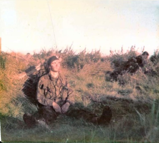 The instrument of torture, the battery, and me in 1980, having just ended a 2 week exercise on Salisbury Plain which culminated in an 8 hour night march and attack. Endex had sounded and I was fast asleep sat up with the radio still on!