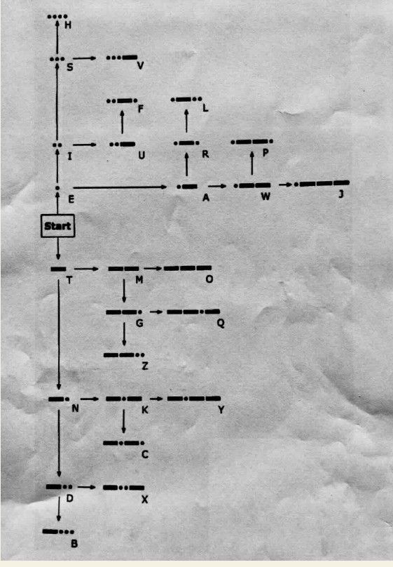 • Simply place your finger on the START box. * Let’s say Di-Dah is received * Slide your finger up to the Dit, then across to the right till you find the Di-Dah * Yes! Congratulations! You’ve just decided the letter ‘A’!