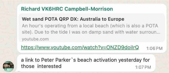 No luck, so I cheated – sent a quick note on our CQQRS Alerts WhatsApp group – which David did see.. + Signals weren’t particularly strong from David’s 20 Watts from Port Broughton SA, but we could still have a nice chat before David was carried off by the marauding mozzies.