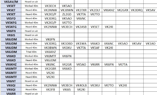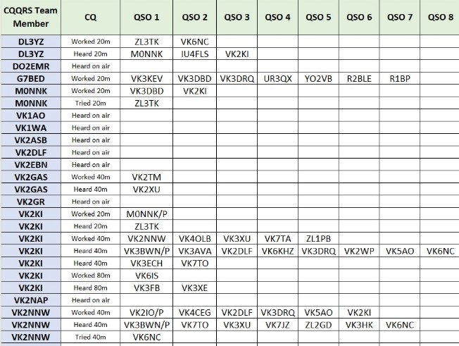 And a special thank you to our editorial team, Nigel G4RWI (head of software development), Patrick VK2IOW (reports coordinator), John VK2RU (spreadsheet pilot), Richard VK6HRC (Post Morsition) and Lance VK7TO (archiving bit wrangler). Great work all!