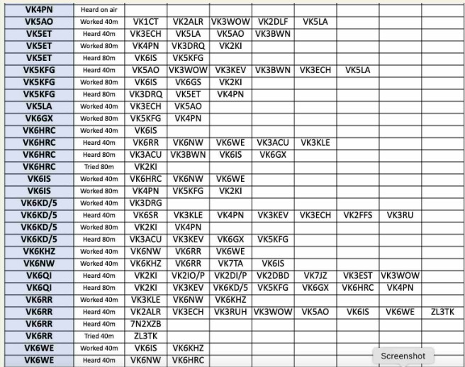 Thank you so much to our team of 37 contributors to this week’s RagChew newsletter: G4RWI, DL3YZ, MOKBJ, MONNK, Ms Elizabeth, VK2DI, VK2DLF, VK2RH, VK2TIG, VK2WP, VK3ACU, VK3AFH, VK3BWN, VK3ECH, VK3KEV, VK3WOW, VK5AO, VK5ET, VK5ET, VKSKFG, VK5LA, VK6FN, VK6GX, VK6HRC, VKEIS, VK6KD/5, VK6KHZ, VK6NW, VK6IO, VK6RR, VK6WE, VK7JZ, VK7KPC, VK7TA, VK7WW, VK8MT and ZL3TK.