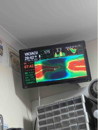 It was also good to have another ambling QSO with James VK7JZ in Hobart who was putting a nice RSN 571 signal.. + Couple more QSOs after dinner – Daniel VK3EST at Pakenham and Peter VK3WOW at Blackburn – before heading down to 80m…