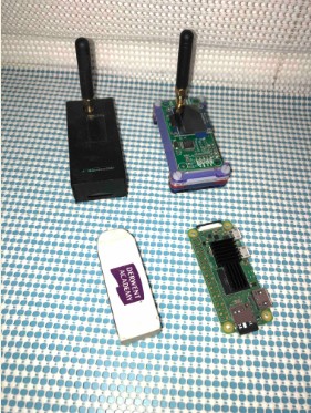 Here’s Richard’s collection of Raspberry Pis. On the top left a DMR node in a case and to the right one without a case showing the DMR board attached to the Pi. Bottom left an eraser for reference and bottom right Pi Zero Hamclock node