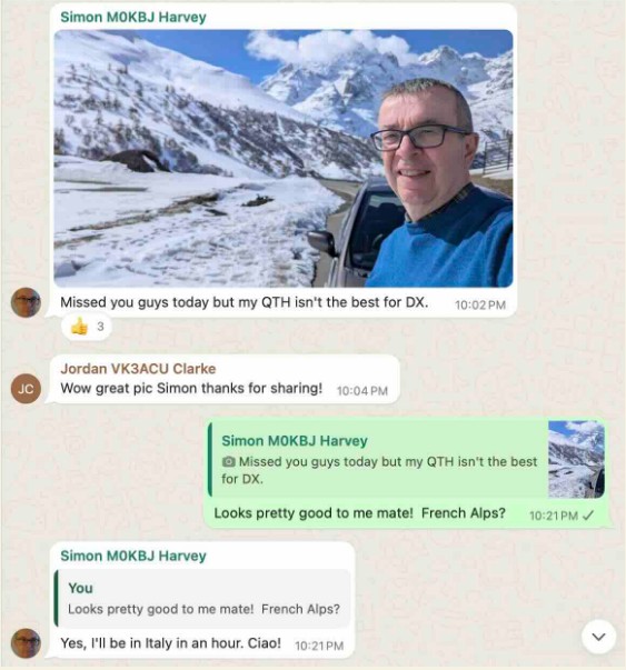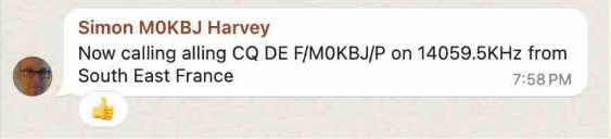 Simon MOKBg is driving around France and Italy for the next week or two – keep ar eye on our CQQRS WhatsApp Alerts.