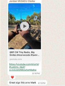 Mark VK2DI has certainly been putting his new Elecraft KH1 to good use – on Tuesday he worked 25 stations in nine countries! No wonder his battery was going flat!