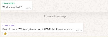 + I was watching the Reverse Beacon Network on my phone and could see Chris and Mike – but there was no sign of Simon MOKBJ; so I flashed him a WhatsApp message when I thought he would be on 15m…