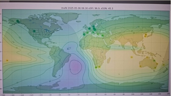 [15m] * Based on the prediction for higher-band success on the long-path, Simon MOKBJ planned to try 20m, 15m and 10m with 20 Watts from a portable location this week.