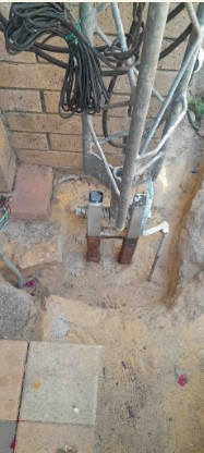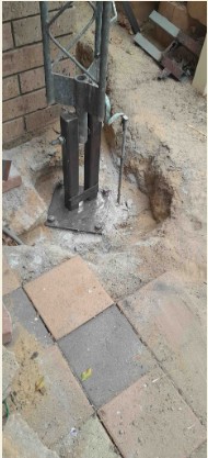 From Roy VK6RR Just sending these photos to show that my new mast support has been completed, we didn’t need to lower it as it was supported while we cut away the old fittings (which are lying down at the side), then placed the base plate in position, dyna bolting and chemically gluing it onto the original cement slab.
