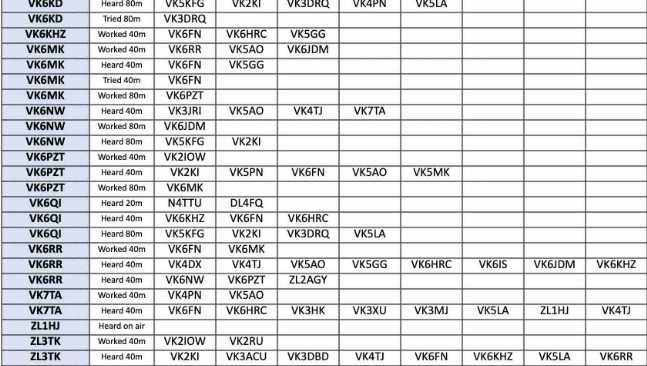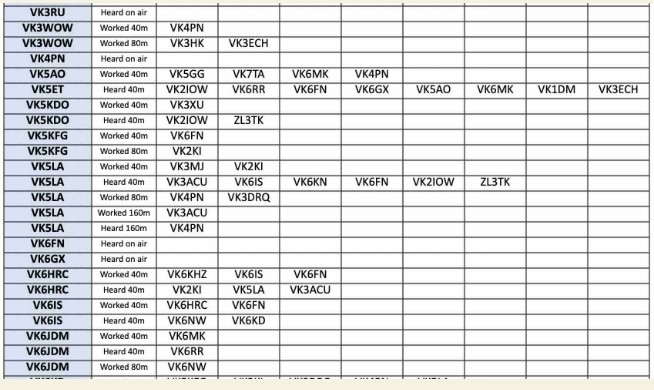 Thank you so much to our team of 28 contributors: MOKBJ, VK2IOW, VK2KI, VK2RU, VK3DRQ, VK3ECH, VK3KEV, VK3WOW, VK5AO, VKBET, VKSKDO, VKSKFG, VK5LA, VK5XB, VK6GX, VK6HRC, VK6IS, VK6JDM, VK6KD, VK6KHZ, VK6MK, VK6MTF, VK6NW, VK6PZT, VK6QI, VK6RR, VK7TA and ZL3TK.
