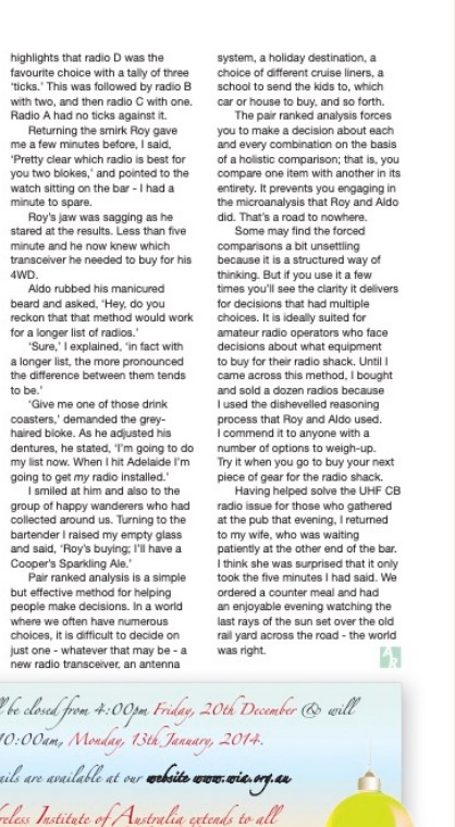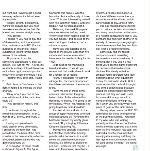 This week I’ve reproduced what ! think is a very interesting article on clear thinking from Dr Hank Prunckun VK5XB. The article appeared in AR Magazine in December 2013.