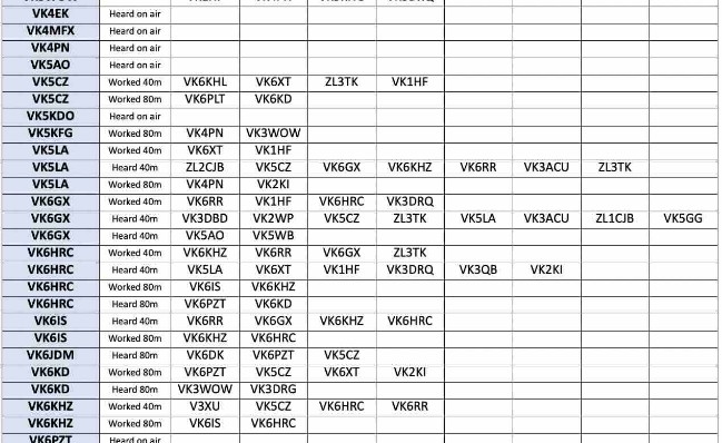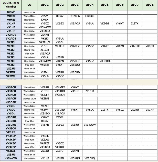 Thank you so much to our team of 27 contributors: MOKBJ, VK1HF, VK2AOE, VK2I0W, VK2RU, VK2WP, VK3ACU, VK3DL, VK3DRQ, VK3KEV, VK3KLE, VK3QB, VK3WOW, VK5CZ, VKSKFG, VKBLA, VK6GX, VK6HRC, VK6IS, VK6JDM, VK6KD, VK6KHZ, VK6PZT, VK6RR, VK6XT, ZL3TK and ZL4CTS.