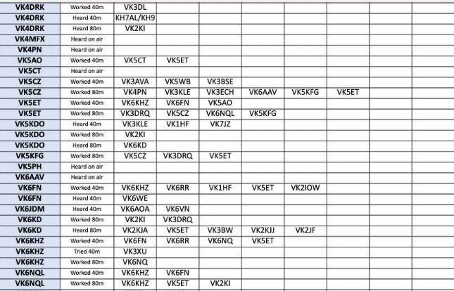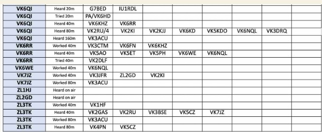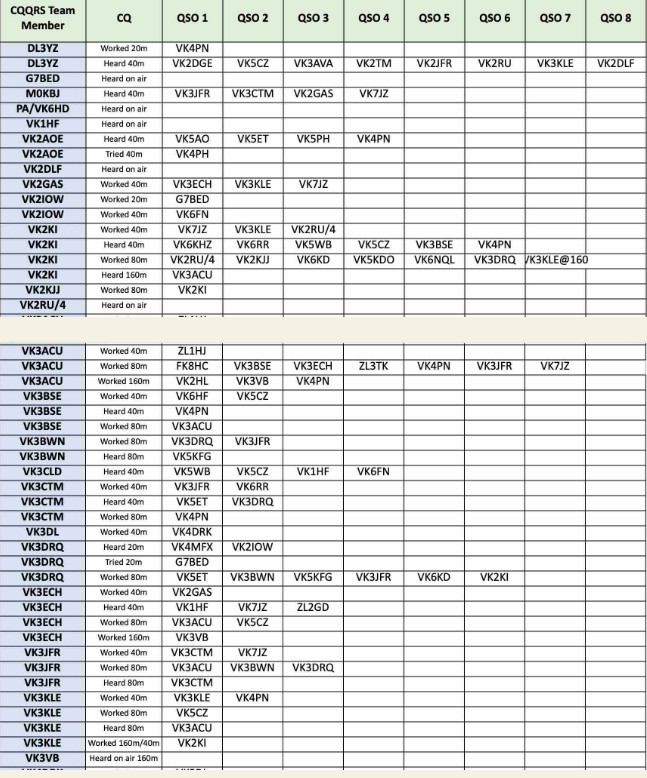 Thank you so much to our team of 39 contributors: DL3YZ, G7BED, MOKBJ, MONNK, VK2A0E, VK2GAS, VK2GAZ, VK2IOW, VK2KJJ, VK2RU/4, VK3ACU, VK3BSE, VK3BWN, VK3CLD, VK3CTM, VK3DL, VK3DRQ, VK3ECH, VK3JFR, VKS3KLE, VK3QB, VK3WOW, VK4DRK, VKSAO, VK5CZ, VKSET, VK5KDO, VK5KFG, VK6FN, VK6HD, VK6HRC, VK6JDM, VK6KD, VK6KHZ, VK6NQL, VK6RR, VK6WE, VK7UZ, ZL3TK.