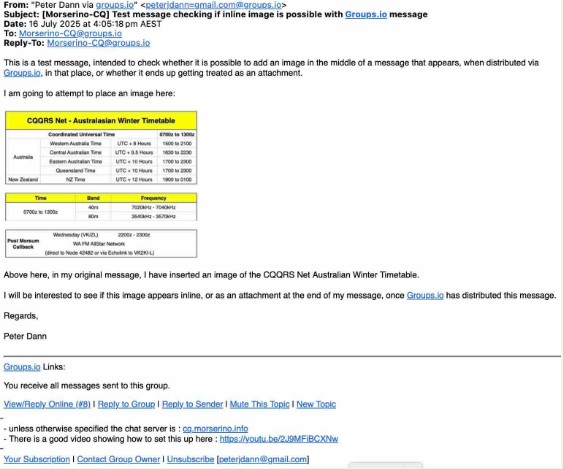 The search for a pair of landing frequencies for our net on 160M continues and Peter VK3WOW has done some pros and cons research into Stan ZL3TK’s suggestion of moving to a groups.io platform instead of the MailChimp newsletter; thank you Peter.