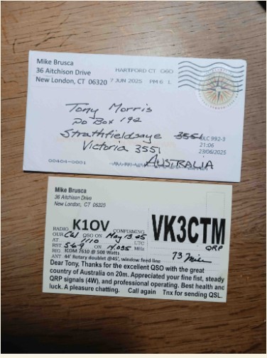 After a pleasant dinner with Ms Elizabeth, I scurried into the shack to have a CWops Morse Mania Winter 2025 Contest QSO with John VK2RU/4 up at Charters Towers near Townsville.
