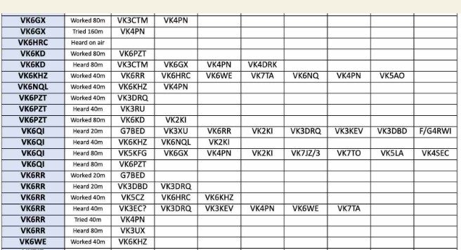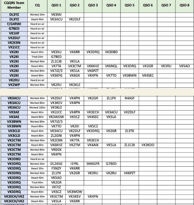 Thank you so much to our team of 31 contributors: DL3YZ, G7BED, MONNK, VK2RU, VK2WP, VK3ACU, VK3AE, VK3BWN, VK3CLD, VK3CTM, VK3DRQ, VK3ECH/VK2, VK3KEV, VK3QB, VK3RU, VK3WOW, VK4PN, VK5CZ, VKSKDO, VKSKFG, VK5LA, VK6GX, VK6HRC, VK6KD, VK6KHZ, VK6NQL, VK6PZT, VK6RR, VK6WE, VK7JZ, ZL3TK & one anonymous.