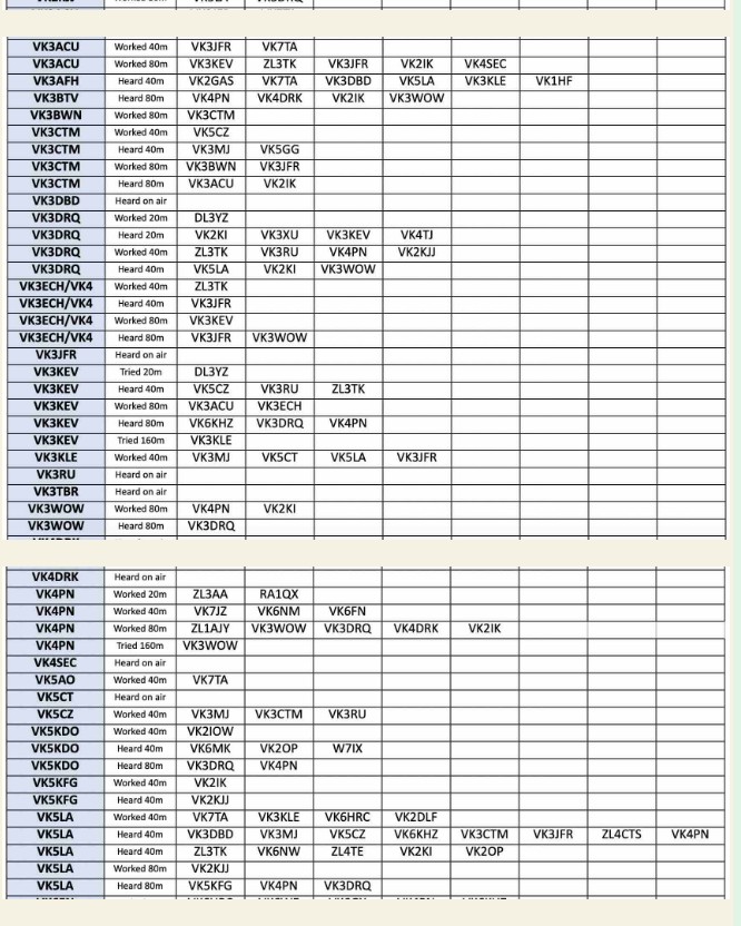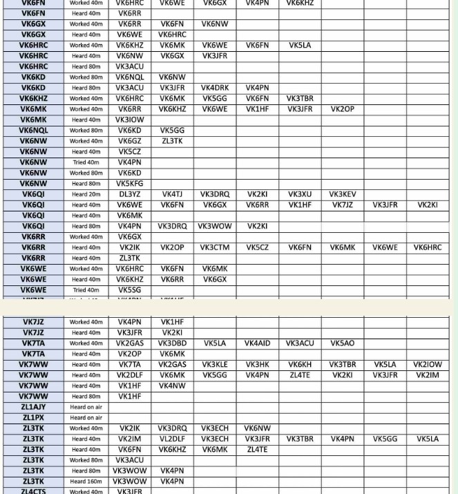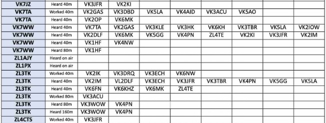 Thank you so much to our team of 44 contributors: G7BED, DL3YZ, MONNK, VK2GAZ, VI2IK, VK2IOW, VK2KI, VK2KJJ, VK2RU, VK3ACU, VK3AFH, VK3BTV, VK3BWN, VK3CTM, VK3DRQ, VK3ECH/VK4, VKSKEV, VK3KLE, VK3QB, VK3WOW, VK4PN, VK5AO, VK5CZ, VKSKDO, VK5KFG, VK5LA, VK6FN, VK6GX, VK6HRC, VK6KD, VK6KHZ, VK6MK, VK6NQL, VK6IS, VK6NW, VK6QI, VK6RR, VK6WE, VK7JZ, VK7TA, VK7WW, ZLIPX, ZL3TK and ZL4CTS.