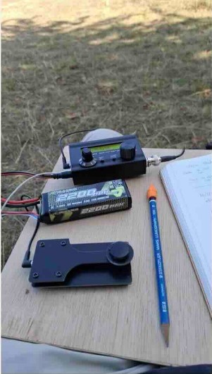 | was able to operate QRP portable briefly from Berrima on the weekend with an FT-818 on CW with the tiny Comet HFJ-350 tapped whip antenna that works very well considering it is only around 1m or so in length (+ 4 short radials quickly run out over the ground) .