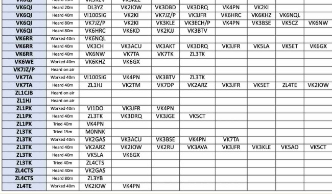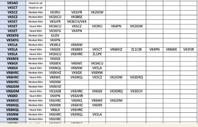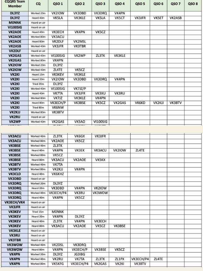 Thank you so much to our team of 40 contributors: DL8YZ, G4RWI, MONNK, VK2AOE, VK2ASB, VK2GAS, VK2GAZ, VK2IOW, VK2KJJ, VK2RU, VK2WP, VK3ACU, VK3BSE, VK3BTV, VK3CLD, VK3DRQ, VK3KEV, VK3QB, VK3WOW, VK4PN, VK5CZ, VKSET, VKSKFG, VKSLA, VK6BEK, VK6HRC, VK6JDM, VK6KD, VK6KHZ, VK6NQL, VK6IS, VK6NW, VK6RR, VK6WE, VK7TA, VK7WW, ZL1PX, ZL3TK, ZLACTS and ZLATE.