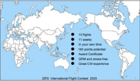 International Flignt Contest It’s not too late to join this interesting Morse Code exercise. Progress report on the QRS International Flight Contest