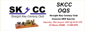 From Garry VK2GAZ: The SKCC Oceania QRS Saunter will take place this Saturday, 16TH August, 2025 from 00:00 UTC until 11:59 UTC a 12 hour event.