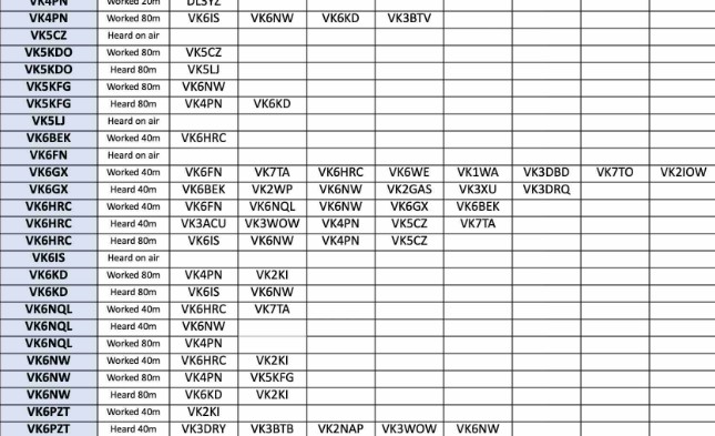 Allen VK6XL called in at the end of the net with some queries about VHF/CW and aurora scatter possibilities and was given a lot of helpful advice from Mark. Thank you to all on last night and this morning