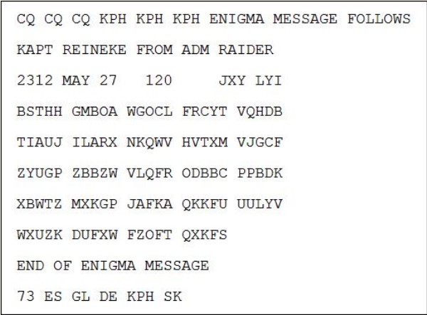 Final challenge: even without decrypting, can anyone spot what clearly makes the message historically impossible? If so, gain some observational ‘Brownie Points’ by letting us know what it is. 73 de Stan