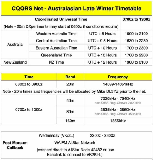Please let us know via our Reports form bit.ly/CQQRSNET who you work or hear on Tuesday’s Group. The report form closes at lunchtime (Eastern Australian time) on Thursday.