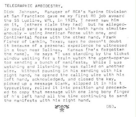 And Peter VK3WOW has suggested an alternative to my suggestion of a separate QRQ (je non-QRS) rag-chew net, after lan VK7TA’s comments last week. I’d also like to acknowledge the trials and tribulations of our CQQRS Reports editor Patrick VK2IOW.