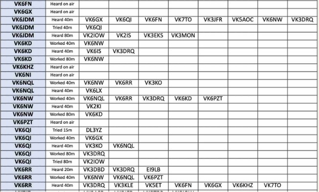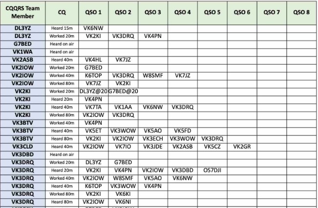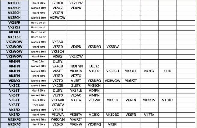 Thank you so much to our team of 28 contributors: DL3YZ, G7BED, VK2ASB, VK2I0W, VK2RU, VK3BTV, VK3CLD, VK3DRQ, VK3ECH, VK3WOW, VKAPN, VK5AO, VKSCZ, VKSET, VKSED, VKSKFG, VK6HRC, VK6JDM, VK6KD, VK6KL, VK6NQL, VK6IS, VK6NW, VK6RR, VK7JZ, VK7TA, VK7WW, and ZL3TK.