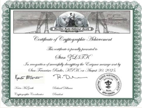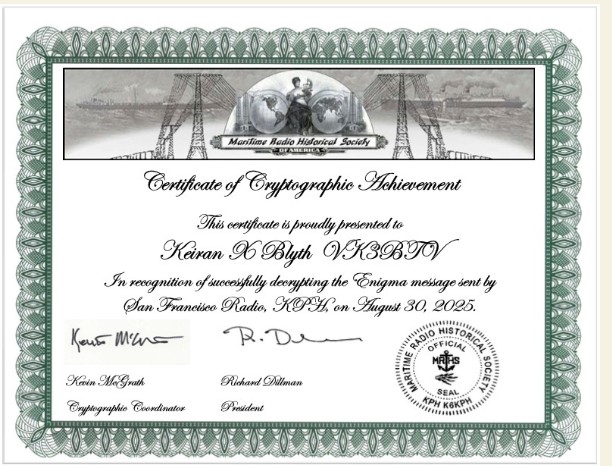 From KPH records, 141 certificates have been issued globally for the 2025 event. Will you qualify to be on KPH’s mailing list after their next epic Enigma transmission? Sure hope so. 73 de Stan ZL3TK