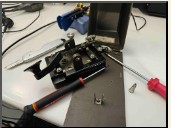 60 key I was using. Last week when I was in cellular nternet coverage I’d exchanged photos with Richard VK6PZT (the Bunbury Radio Club Morse-key restoration officer) and noticed that his key had an extra screw Jown the pivot end – which didn’t make sense; mine had a threaded hole through the beam where the screw should have been.