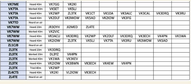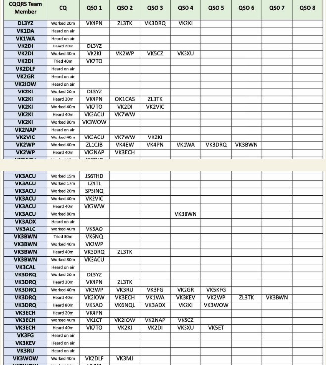 Thank you so much to our team of 39 contributors: DL3YZ, G7BED, K3WWP, MOKBJ, NOHHE, VK2DI, VK2GAZ, VK2IOW, VK2RU, VK2VIC, VK2WP, VK3ACU, VK3ALC, VK3BWN, VK3BYD, VK3DRQ, VK3ECH, VK3WOW, VK4PE, VK4PN, VKSAO, VKSET, VKSKFG, VK6HRC, VK6JDM, VK6KD, VK6KHZ, VK6NQL, VK6PZT, VK6RR, VK6WE, VK7JZ, VK7ME, VK7TA, VK7TO, VK7WW, ZL8TK, ZL8TK, ZL4CTS.