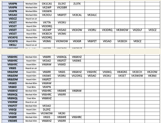 And it’s all made possible because of the work by Nigel G4RWI to build the Google Forms database originally suggested by Stuart VK6MK, as well as the slick Python language processing software that converts the data to Word and Excel format, and produces other reports that I use to assemble the newsletter each week.