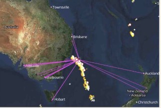 Interesting to loc at the KiwiSDRs at Dinner Plain (VK1HF), Ironstone Range (VK5PH) and Northam (VK6SEG); the static crashes from the line of thunderstorms off the East coast came in bursts of ha a dozen or so one after the other, and