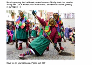Sorry for that. Thanks to all the stations that joined in the fun today. May the spirit of the German carnival spread to the other side of the world and sip on a cold drink with me 🙂 Have a great week! Narri-Narro and 73 from foolish Germany.