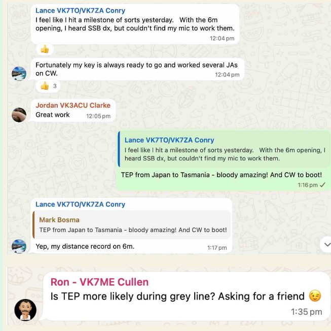 [40m] Didn’t get the opportunity to work any stations on Tuesday night but managed hear VK7GG (I think) and VK2KI around 7pm on 7036 kHz.