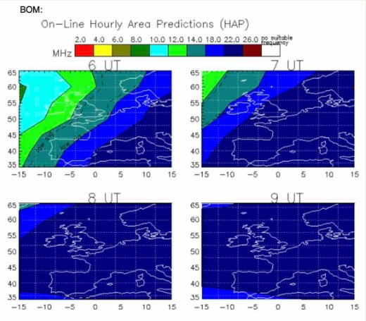 Very quiet to start with, worked a local station and started hearing Eastern states signals coming up much later with slow QSB making copy difficult.