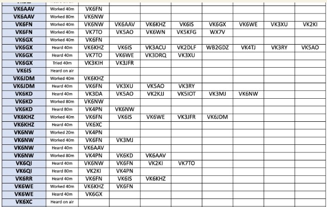 Ih = A OY nate AY VK6FN Max VK6KD David VK6NW Wayne VK6QI Mark KM7CVW_ Darren ZL3TK Stan VK6HRC