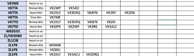 [40m] What a wonderful evening. Very good propagation to my station in Hobart, allowing 2 rare treat of armchair copy. VK2DLF, George and I kicked the evening with our differing interpretations of what constitutes a heat wave.