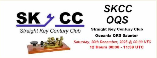 Jens would prefer small groups – one or two would be fine – so please give him a hoy if you’d like to join in. SKCC Oceania QRS Saunter This weekend sees the final Straight Key Century Club Oceania QRS Saunter being held.