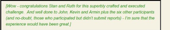 (An apology is due to Garry) 2. Where did the “six other participants” suddenly come from? None were alluded to in any of the weekly STC reports. 3. Who are the undoubted participants who didn’t submit ‘reports’?