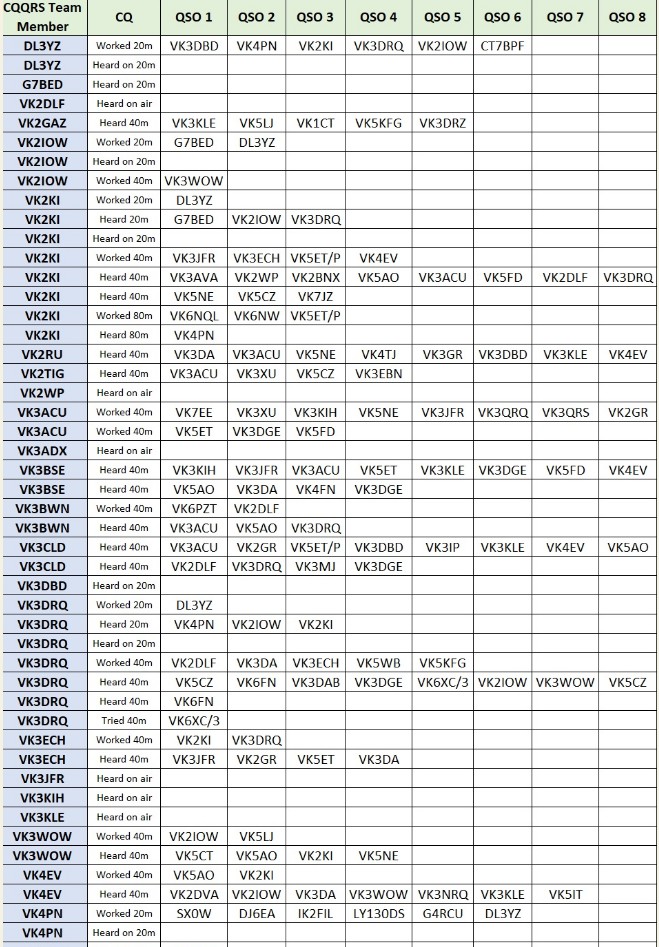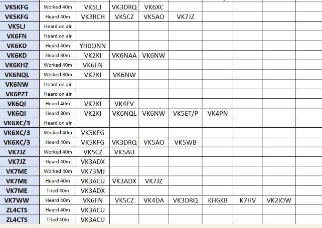 And a special thank you to our editorial team, Nigel G4RWI (head softie), Patrick VK2IOW (Mister Report Wrangler), John VK2RU (spreadsheet wizard), Richard VK6HRC (Post Morsum cat- herder) and Lance VK7TO (technical editor and search bit magician).