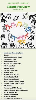 The opinions expressed in the RagChew newsletter are those of the individual contributors. The opinions do not necessarily reflect that of the editor or of the CQQRS Group members.