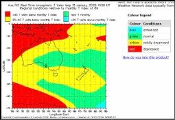 From Mark VK2KI / VK6QI On Tuesday evening during our CQQRS Slow CW Practice QSO net, Wayne VK6NW emailed me a T Index map from the Bureau of Meteorology Space Weather Service. The map depicted depressed conditions over WA at 0830Z.