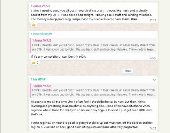 What a shambles my brain was tonight. Lesson to not let hubris overtake ability. This last couple of weeks I have been doing drills and code MS groups at home and listening to CW recordings on my daily walk.