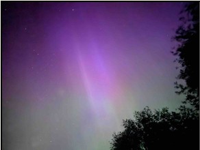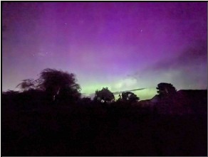 From Nic VK7 WW Last week, looking South toward the lights of Launceston, 15KM away. I was very surprised to see the striations dancing. The colours could be seen with the naked eye, but I have to say the phone picks them up better…. better than the err…